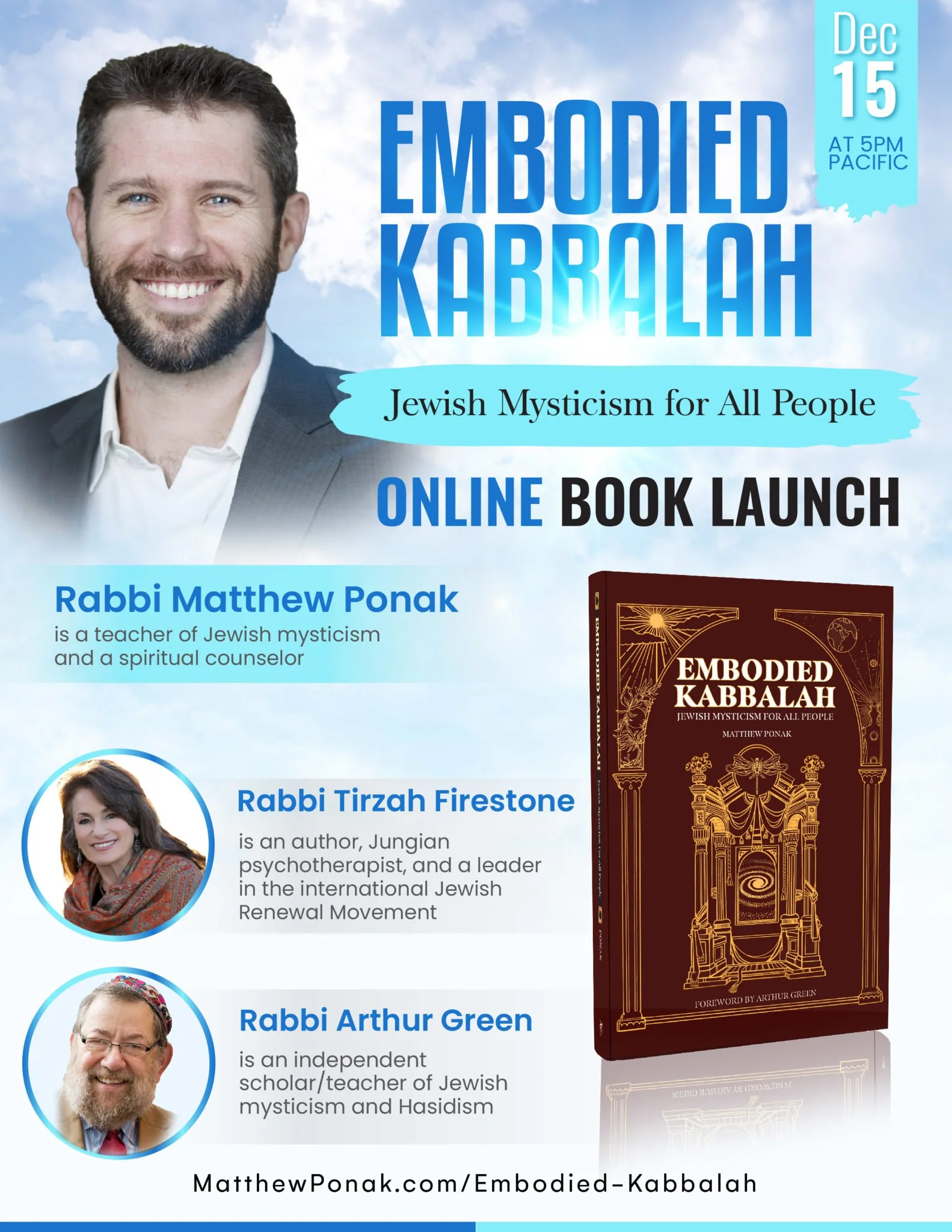 This launch party—with three teachers of Jewish mysticism—is a special thank-you to everyone who orders Embodied Kabbalah before its official publication on December 15, 2022.